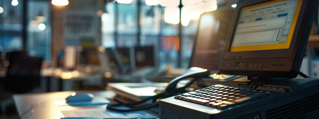 Alt text: Old fax machine replaced by online faxing software due to data security concerns.